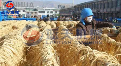 先清除地表,然后搶晴天土壤適應(yīng)時(shí)用釵角鋤從一側(cè)開(kāi)挖,注意不可從根條挖破挖斷,挖起后清去泥土,符合要求的運(yùn)回加工。新鮮黨參以根條較長(zhǎng),粗1厘米以上,無(wú)支根、尾根少、漿氣足、無(wú)損傷者為上品。