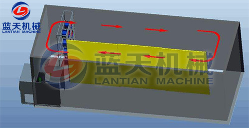 3.為了保證金銀花快速干燥和烘干質(zhì)量,烘房?jī)?nèi)要做靜壓腔,讓出風(fēng)更加均衡,回風(fēng)設(shè)計(jì)在烘房頂部正中,讓熱風(fēng)流動(dòng)更加均勻順暢。