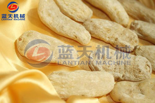 如果是加工作為禮品或供出口用的透明“雪天麻”,還需在蒸制后及時剝?nèi)ヌ炻楸砻娲制?,或在蒸制前將天麻粗皮刮去?/p>