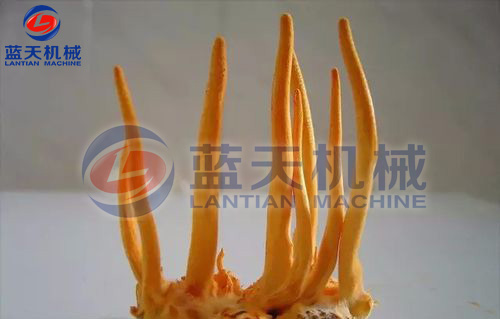 采收,北蟲草植育45天時,子座上部至頂端形成凸起孢子囊時,約計子座6-12厘米時,即進入采收期,要及時收獲,在架體上揭去封口膜、促進子實體失水和以收縮的培養(yǎng)基繼續(xù)收縮一段時間(2-4小時),可連草帶培養(yǎng)基一塊拔出處理。