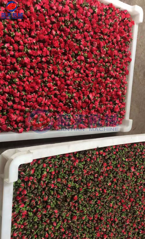 玫瑰花的商品花分為花苞和鮮花,在烘干工藝的程序上有所不同,下面我們結(jié)合實(shí)際的現(xiàn)場(chǎng)情況做一次整個(gè)工藝流程的介紹。