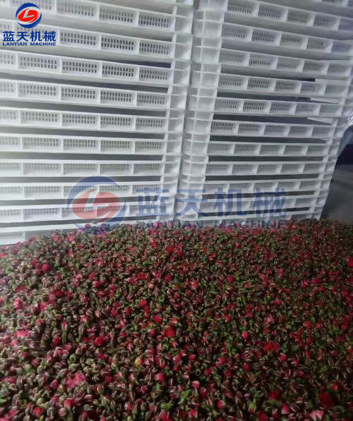 挑選后的鮮花蕾均勻的擺放在有鐵絲網(wǎng)底的網(wǎng)格盤(pán)內(nèi),花瓣統(tǒng)一向下或向上,厚度一致,勿擠壓;擺滿花蕾的網(wǎng)格盤(pán)裝車時(shí)要輕裝輕放,花蕾不能變形、磨損。