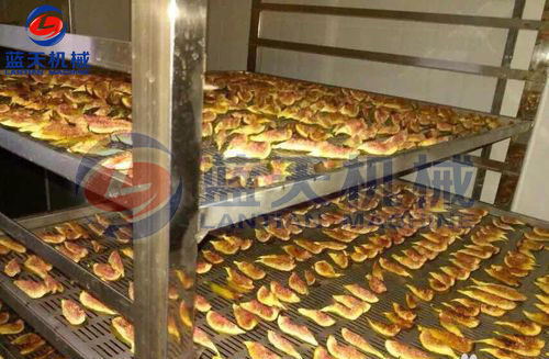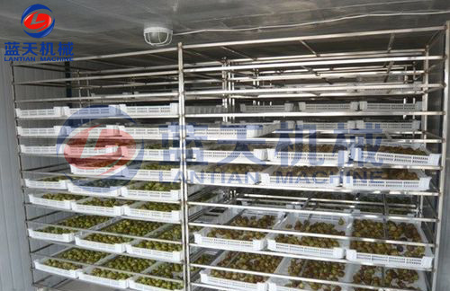 如為整顆烘干,需要的時間更長一些,先將果子均勻的鋪放在架子車上,推入無花果烘干機干燥25-30小時后,再推出烘房外陰涼的地方放置一天,再推入烘房內進行第二次的烘干。無花果烘干機一天的烘干量視機型規(guī)格決定,最少的以600-800 斤一個批次,最多的2000斤一個批次,10000斤甚至更大產能則考慮對吹及組合方式即可。
