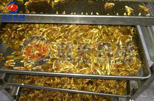 無花果鮮果含水以游離水、膠體水及化合水狀態(tài)存在,含糖高,如果自然曬干時太陽光強度不夠,很難把無花是干透,使用空氣能無花果烘干機的重點在于溫度、濕度、風速、風量精準可控。視塊狀大小一般初期1小 時設置溫度宜在70-85℃的范圍,在短期內使無花果水分大量的蒸發(fā),這4小時的排濕控制在50%,第二段8小時的時間,溫度以60-70℃的范圍為基準,稍縮短 排濕時間,濕度控制為30%,第三段5小時的時間,溫度降低50-60℃,濕度 繼續(xù)降低至10%;整個過程約18小時,無花果含水率降到15%以內。