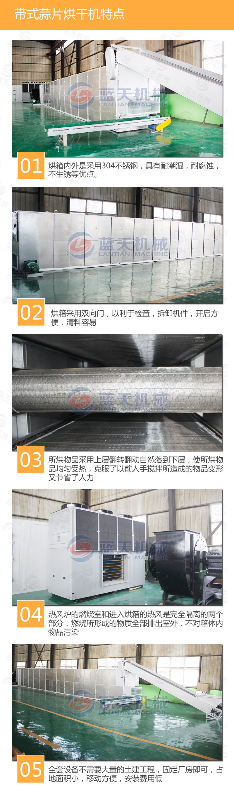3.蒜片在箱體內(nèi)逐層移動(dòng),有多次的翻轉(zhuǎn)掉落過程,使物料受熱更加均勻;