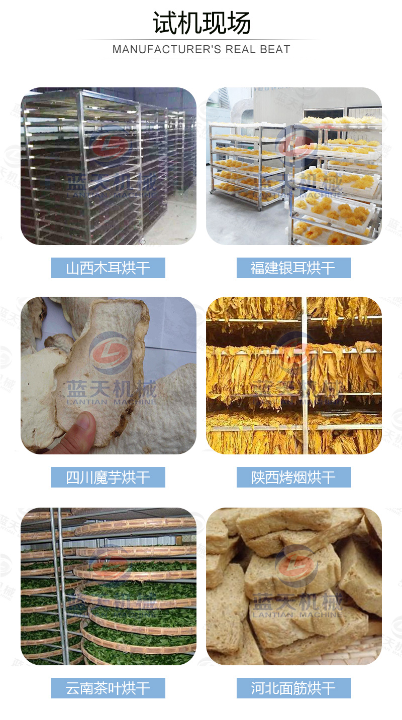 三:設(shè)定木耳烘干機(jī)的運(yùn)行參數(shù),要注意在整個(gè)木耳烘干過程中前段用35-45度低溫主要進(jìn)行除去濕度,因?yàn)轷r木耳的含水率很大,到中段時(shí)可以適當(dāng)升溫到50度,進(jìn)行升溫排濕,后一階段觀察木耳含稅率下降情況,可適當(dāng)升溫到55度,在經(jīng)過十多個(gè)小時(shí)的連續(xù)烘干除去濕度后,木耳烘干了。