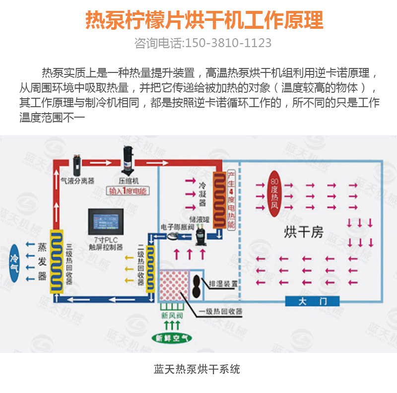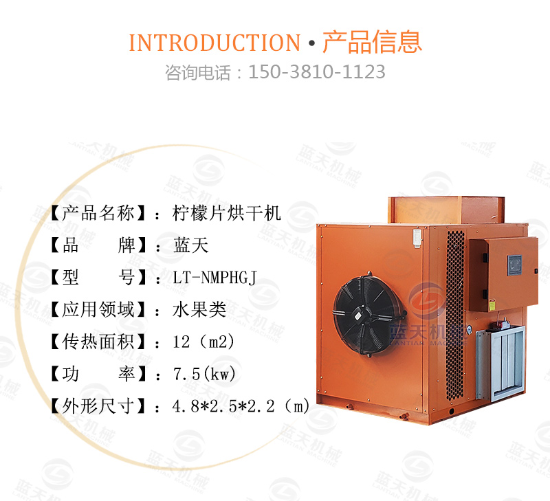三:將檸檬片整齊的擺放在通風(fēng)的托盤上,切忌堆疊,先利用自然風(fēng)和光照使檸檬片脫去部分水分。將風(fēng)干24小時(shí)的檸檬片轉(zhuǎn)移到空氣能檸檬烘干機(jī)內(nèi),設(shè)置烘干機(jī)溫度為低溫40-50℃范圍,檸檬片的水分需在低溫干燥的過(guò)程中緩慢蒸發(fā)并排出,烘干過(guò)程約12-13小時(shí)。