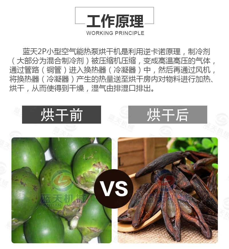 1、采用熱泵檳榔烘干機(jī)對檳榔進(jìn)行烘干處理,烘干過程能耗低,有效減少運行成本。