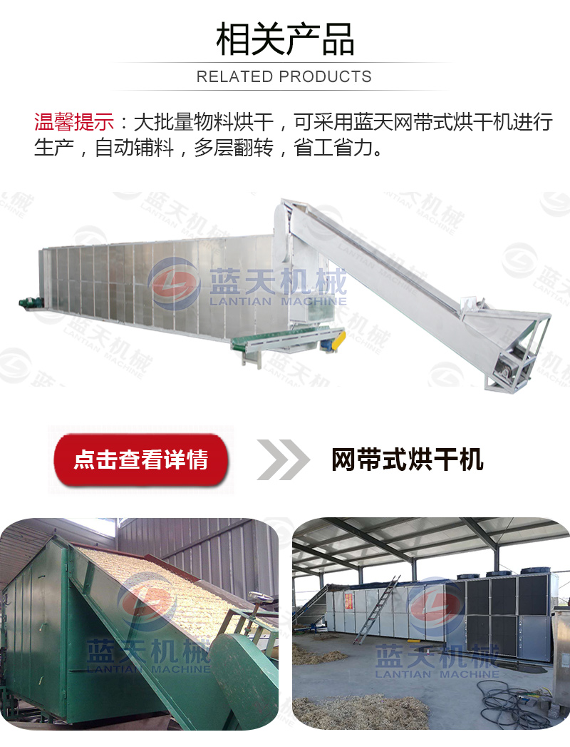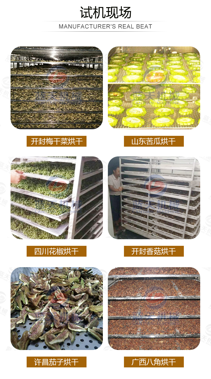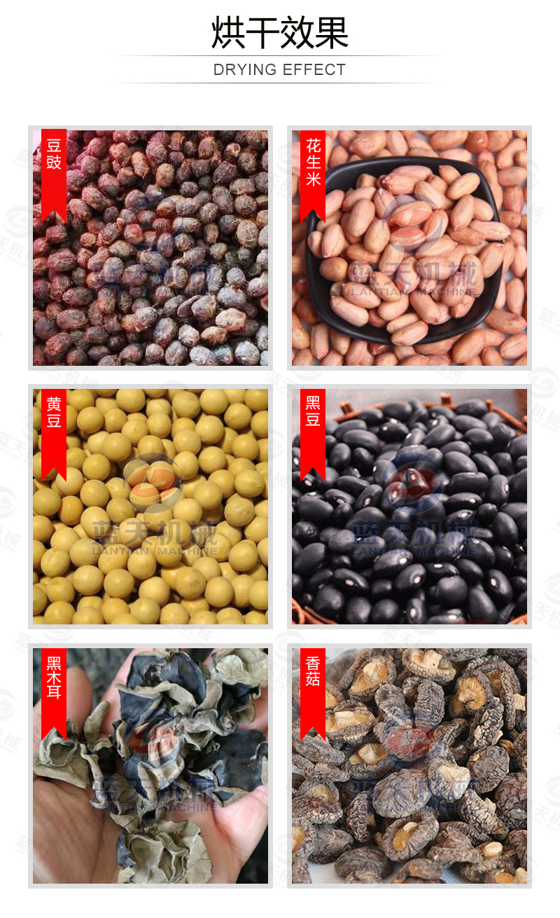 豆豉烘干機還可以用在魚粉、咖啡豆、蒜片、飼料顆粒、皮革污泥、大豆豆粕、油茶籽、山茶籽、玫瑰花、魚干,蔬菜,食品,辣椒等材料的烘干處理。
