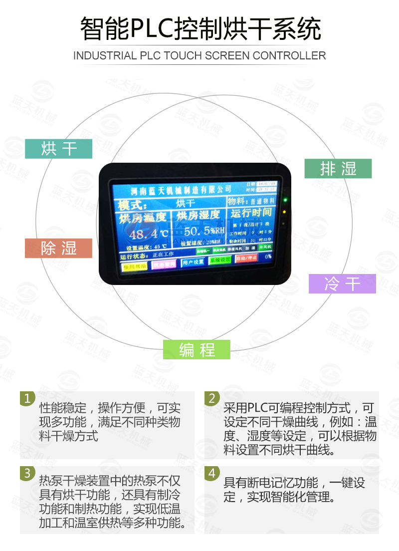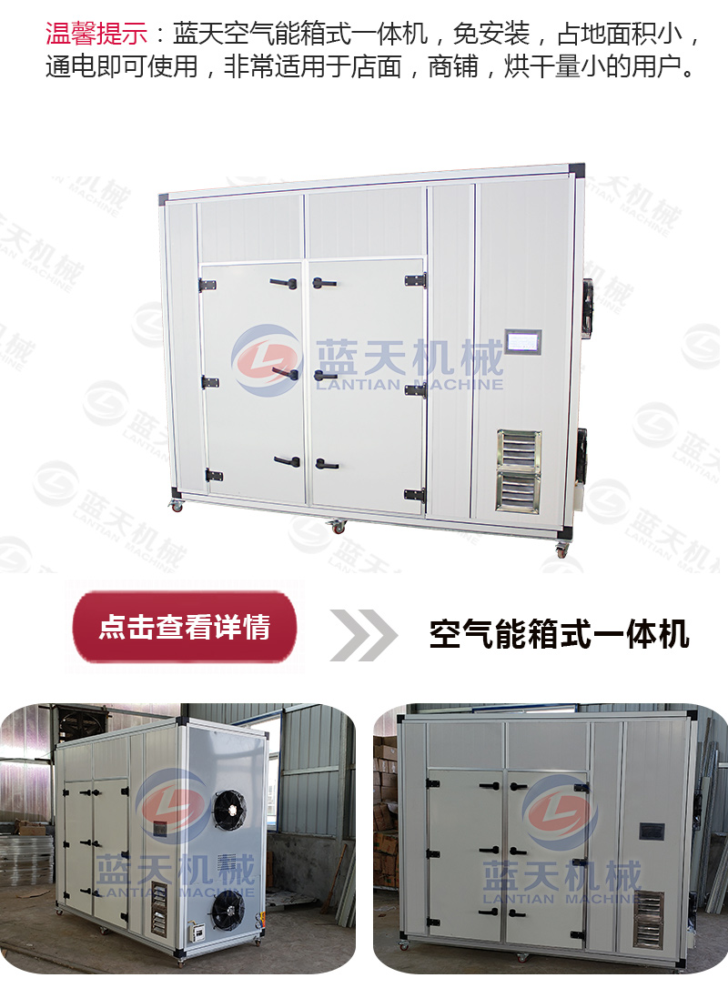 6.1、使用豆豉烘干機進行烘干處理。豆豉晾干發(fā)酵完畢,從罐中取出攤在托盤上準備烘干機。豆豉烘干設備使用熱泵為熱源,不需要外接蒸汽,不需要使用基于燃燒的燃煤鍋爐為熱源,環(huán)保節(jié)能,全程沒有污染,智能控制溫濕參數(shù)和烘干時間,直至烘干完成。
