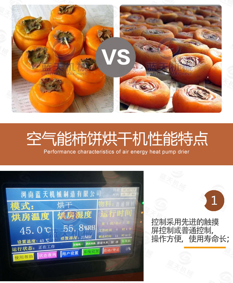 傳統(tǒng)的柿餅的生產(chǎn)周期傳統(tǒng)的自然晾曬所需要的一月有余,而采用熱泵柿餅烘干機(jī)則縮短到4-5天(根據(jù)使用時的溫濕度確定),并且在質(zhì)量上優(yōu)于自然涼曬的柿餅。在脫澀期溫度不能超過45度,濕度保持32%上下;前期烘烤期排濕不能太大,以免結(jié)皮太早以及影響回軟過程;第一次捏餅,第二次捏餅,手要輕,力要勻!大量脫水期溫度不能超過65度,濕度不能高于45度。統(tǒng)而言之為“兩烘兩停三捏”的全自動控制烘干方法。