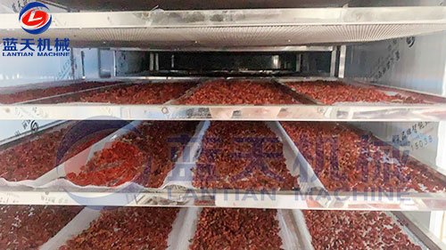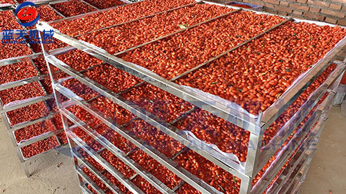 寧夏枸杞烘干機(jī)客戶(hù)烘干枸杞現(xiàn)場(chǎng),客戶(hù)先把新鮮的枸杞鋪在物料托盤(pán)上,枸杞鋪好后,將物料盤(pán)推進(jìn)寧夏枸杞烘干房設(shè)置好對(duì)應(yīng)的烘干參數(shù)進(jìn)行烘干。